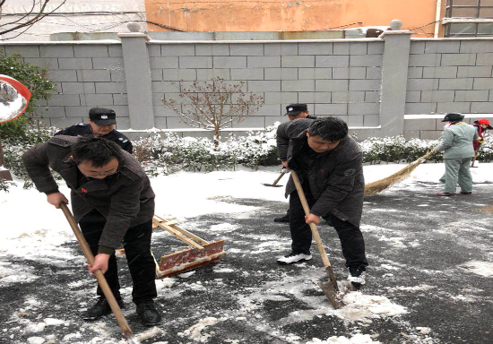 2018年1月25日,安徽省境內(nèi)出現(xiàn)大范圍強降雪,雪量大、來勢急。突如其來的暴雪,導致道路受阻,雪后結(jié)冰,存在諸多安全隱患。公司黨員、物業(yè)公司工作人員沖鋒在前,充分發(fā)揮先鋒模范作用,戰(zhàn)斗在除雪防災的第一線。