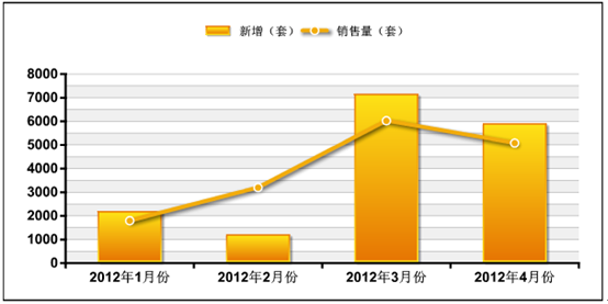 2012年4月份合肥市住宅類(lèi)商品房的銷(xiāo)售量環(huán)比出現(xiàn)了明顯幅度下跌的現(xiàn)象,但是本月期間的銷(xiāo)售量仍然超過(guò)了5000套,這也是自2011年4月份以來(lái)首次出現(xiàn)銷(xiāo)售量連續(xù)兩月超過(guò)5000套的情況。