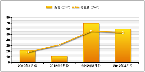 2012年4月份合肥市住宅類(lèi)商品房供銷(xiāo)狀況變化圖(面積)