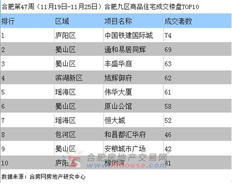 合肥第47周(11月19日-11月25日)合肥九區(qū)商品住宅成交樓盤(pán)TOP10