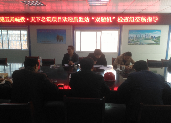 2017年11月1日上午,合肥市質(zhì)量安全監(jiān)督站相關(guān)領(lǐng)導(dǎo)蒞臨合肥天下名筑一期二標(biāo)項(xiàng)目進(jìn)行“雙隨機(jī)”檢查并召開專題會議,天下名筑現(xiàn)場主要負(fù)責(zé)人,監(jiān)理單位、中建五局相關(guān)負(fù)責(zé)人參加。