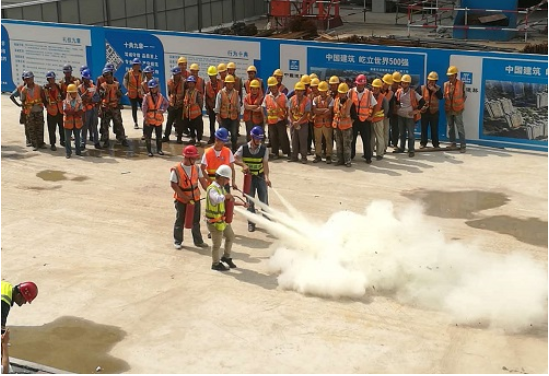 演練活動(dòng)開(kāi)始前,由總包單位進(jìn)行消防器材的演練培訓(xùn),指導(dǎo)現(xiàn)場(chǎng)各個(gè)工種如何正確使用消防器材。隨后,項(xiàng)目部負(fù)責(zé)人宣講本次安全月的主題以及組織本次安全應(yīng)急活動(dòng)的必要性。最后,由監(jiān)理單位,總包單位及分包單位等一起進(jìn)行消防應(yīng)急演練活動(dòng)并圓滿完成。