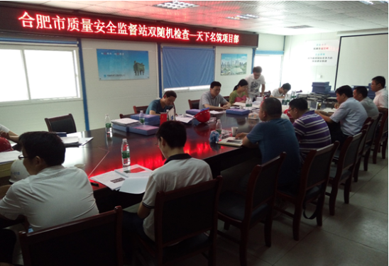 2017年6月15日上午,合肥市質(zhì)量安全監(jiān)督站相關(guān)領(lǐng)導(dǎo)蒞臨合肥天下名筑項目進行雙隨機檢查并召開專題會議,天下名筑現(xiàn)場主要負責人,監(jiān)理單位、中建五局相關(guān)負責人參加。