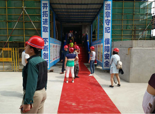 在主持人宣讀完活動(dòng)流程及安全須知后,業(yè)主們?cè)诠ぷ魅藛T處領(lǐng)取并佩戴了安全帽,在置業(yè)顧問(wèn)的帶領(lǐng)下井然有序地參觀了項(xiàng)目一標(biāo)段工地?,F(xiàn)場(chǎng)建材整齊劃一地?cái)[放著,沿路的安全護(hù)欄及指示標(biāo)牌、干凈整潔的施工場(chǎng)地給客戶們留下了深刻的印象。