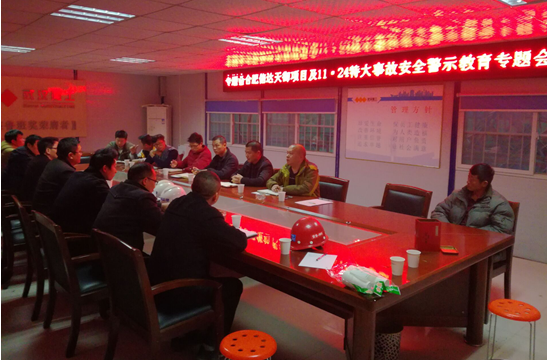2016年11月30日,阜陽濱河花園項目部組織召開合肥信達(dá)天御及11.24特大事故安全警示教育專題會,中建五局、武漢建工項目部管理人員、安全員,合肥豐潤、浙江江南監(jiān)理部全體成員參加了會議。