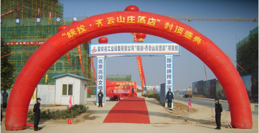 項目現(xiàn)場彩旗招展、賀幅林立,五彩拱門與紅地毯交相輝映,禮花綻放、嘉賓滿座,共同慶賀皖投&middo;齊云山莊酒店主體結(jié)構(gòu)封頂。儀式上,皖投置業(yè)總經(jīng)理、安徽省工業(yè)設(shè)備安裝公司總經(jīng)理以及安徽省全椒縣經(jīng)濟開發(fā)區(qū)主任,均做了熱情洋溢的發(fā)言對酒店結(jié)構(gòu)封頂表示熱烈祝賀,并希望各承建單位和部門繼續(xù)發(fā)揚真抓實干,精益求精的一貫作風,認真完成后續(xù)設(shè)備安裝和精裝修工程,確保2012年11月順利試營業(yè)。