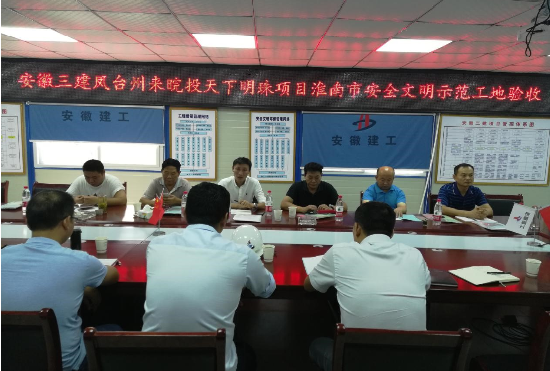會(huì)議首先由安徽三建項(xiàng)目經(jīng)理對(duì)鳳臺(tái)州來皖投天下明珠項(xiàng)目安全文明施工開展情況進(jìn)行了匯報(bào)。隨后,專家組成員對(duì)大型設(shè)備設(shè)施、模板腳手架支撐、施工用電等方面分組進(jìn)行了嚴(yán)格檢查,實(shí)地核查了整個(gè)項(xiàng)目現(xiàn)場(chǎng)施工情況,并仔細(xì)查閱了項(xiàng)目部安全管理資料。驗(yàn)收評(píng)審會(huì)上,專家組對(duì)天下明珠項(xiàng)目部在安全文明生產(chǎn)、揚(yáng)塵治理工作方面所做出的努力給予了充分肯定,對(duì)項(xiàng)目下一步創(chuàng)建安徽省建筑施工安全標(biāo)準(zhǔn)化示范工地提出了建設(shè)性意見。