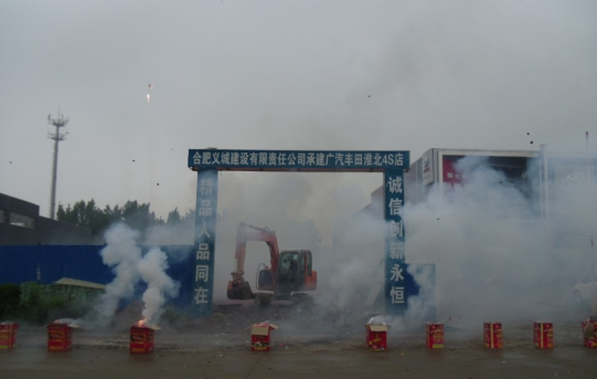 2012年5月8日上午10點(diǎn)38分,皖投融富置業(yè)公司淮北廣汽豐田4S店項(xiàng)項(xiàng)目現(xiàn)場(chǎng)禮炮齊鳴,爆竹聲聲,展廳二及配套服務(wù)用房項(xiàng)目正式破土動(dòng)工,進(jìn)入工程建設(shè)階段。