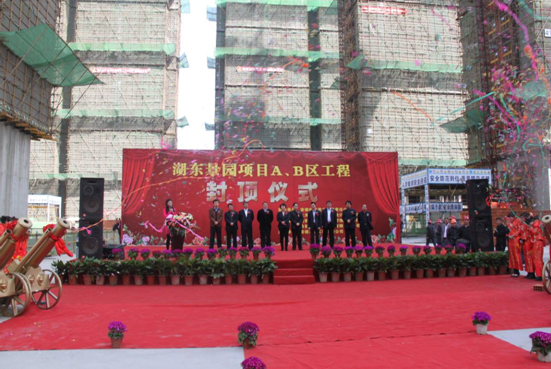 2012年3月31日上午10時18分,湖東景園項(xiàng)目A、B區(qū)工程主體結(jié)構(gòu)封頂儀式在項(xiàng)目現(xiàn)場隆重舉行。