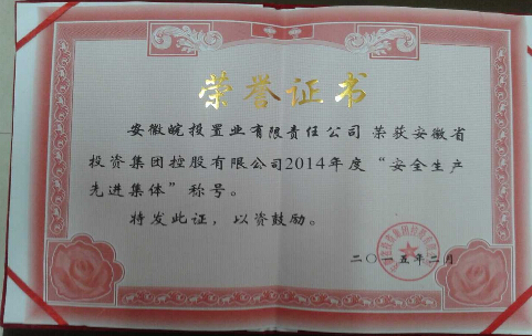 近日,公司在集團公司2014年度安全生產(chǎn)工作評比中,榮獲“安全生產(chǎn)先進集體”稱號。