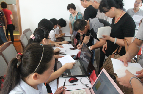2012年9月1日,湖東景園商鋪搖號(hào)工作順利開展。早上七點(diǎn)多鐘,客戶們就陸續(xù)來到現(xiàn)場,排起了長隊(duì),工作人員立即投入到緊張有序的工作中去。此次商鋪銷售與以往不同,在商鋪數(shù)量少、定購客戶多的情況下,為了防止在搖號(hào)過程中有突發(fā)事件發(fā)生,工作人員緊密配合、環(huán)環(huán)相扣,從簽到、搖號(hào)、選房、交款、簽訂協(xié)議、房源確認(rèn)等各項(xiàng)環(huán)節(jié)中,嫻熟機(jī)智的應(yīng)變著每一個(gè)環(huán)節(jié)的分工角色。