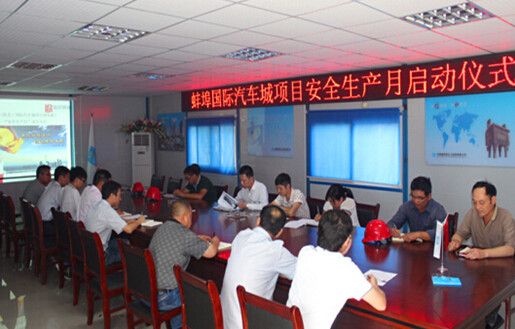 為全面貫徹落實黨中央、國務(wù)院、省市有關(guān)部門對安全生產(chǎn)工作的一系列方針政策要求,深入開展全國第十三個“安全生產(chǎn)月”活動。2014年6月5日,蚌埠國際汽車城項目在A區(qū)展示中心組織召開以“強化紅線意識,促進(jìn)安全發(fā)展”為主題的“安全生產(chǎn)月”啟動會,公司相關(guān)人員參加。