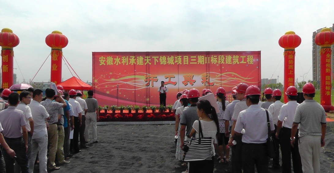 2013年7月28日上午,天下錦城三期Ⅱ標段開工典禮隆重舉行。安徽皖投置業(yè)有限公司、安徽水利開發(fā)股份有限公司、安徽省中灝工程咨詢有限公司等單位相關人員出席開工儀式。
