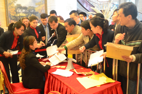 清晨細(xì)雨綿綿,但抵擋不住眾多購房者的熱情。早上8點(diǎn)鐘左右,營銷中心等候區(qū)已擠滿了人,他們都在等待著正式選房時(shí)間的到來。本次開盤采用電子搖號(hào)的形式,9點(diǎn)18分正式產(chǎn)生第一輪的8組號(hào)碼,8組客戶按照搖號(hào)的順序依次進(jìn)入銷售現(xiàn)場(chǎng),在置業(yè)顧問熱情講解中,選房、下定,整個(gè)流程秩序井然,絕大部分客戶都選到了自己滿意的房源。