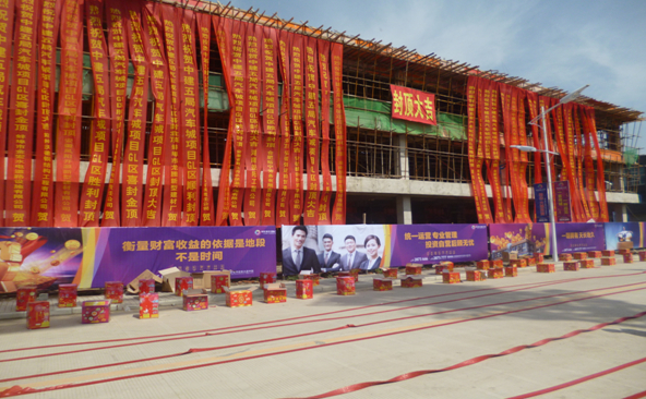 2014年5月12日,伴隨隆隆鞭炮聲,蚌埠(皖北)國際汽車城二期一標(biāo)主體結(jié)構(gòu)封頂。