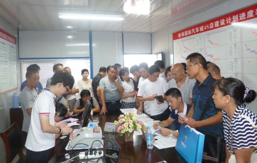 2013年9月8日,蚌埠國際汽車城一期商鋪認(rèn)籌活動(dòng)火爆開啟。當(dāng)日早晨7:00就已經(jīng)有客戶來到營銷中心等候認(rèn)籌,等到8:00認(rèn)籌正式開始時(shí),營銷中心早已是人氣爆棚。9月8日當(dāng)天來訪客戶達(dá)到204組,共認(rèn)籌180套商鋪,可見客戶們對(duì)汽車城商鋪充滿信心,紛紛搶定。