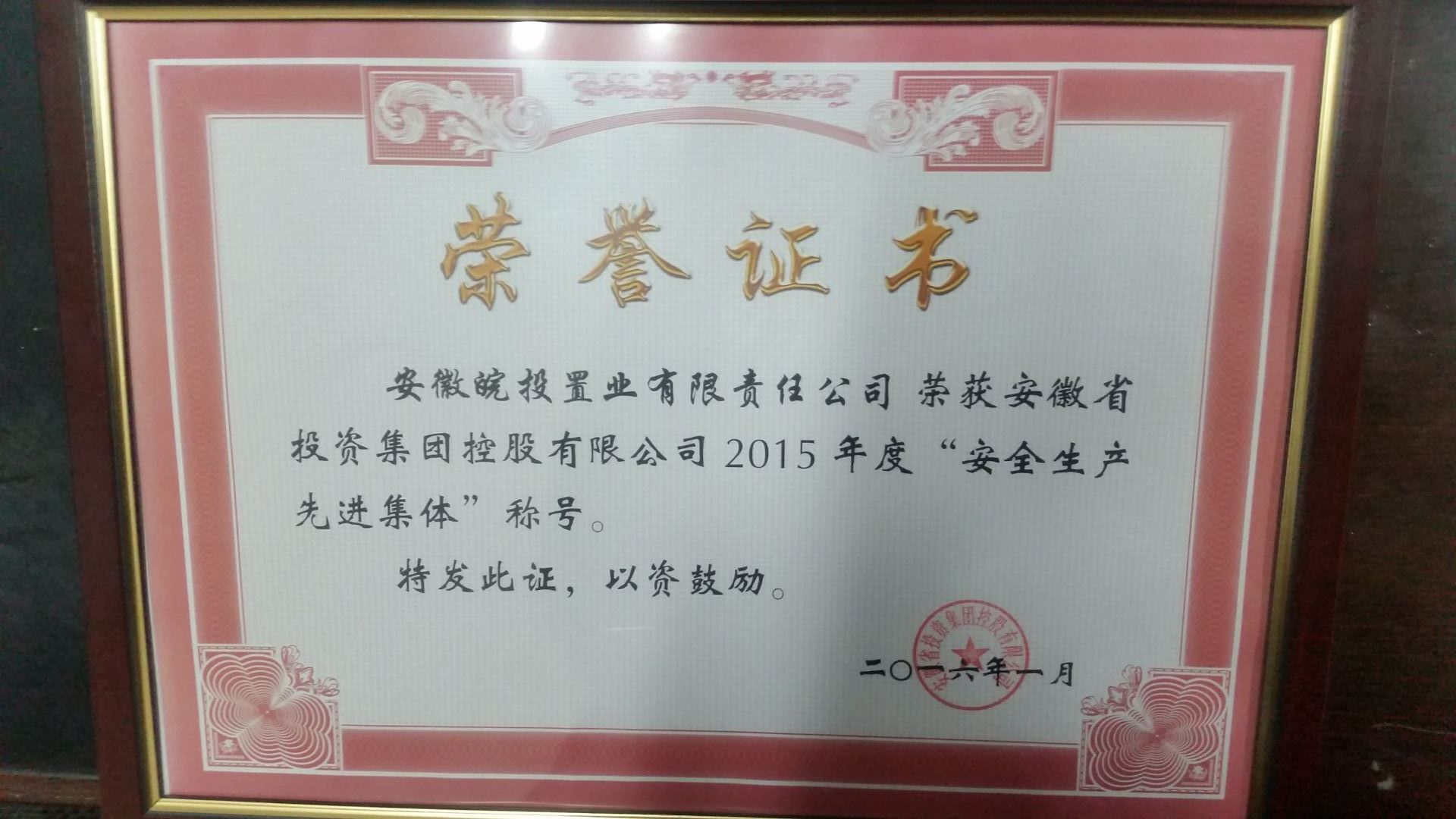 2016年1月28日,公司榮獲集團公司“安全生產(chǎn)先進集體”稱號。