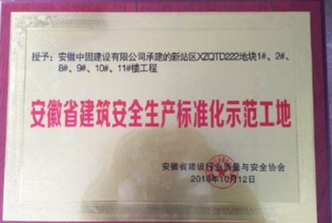 2018年10月12日,天下藝境項目榮獲“2018年安徽省建筑安全生產(chǎn)標(biāo)準(zhǔn)化示范工地”,并于11月30日授牌。
