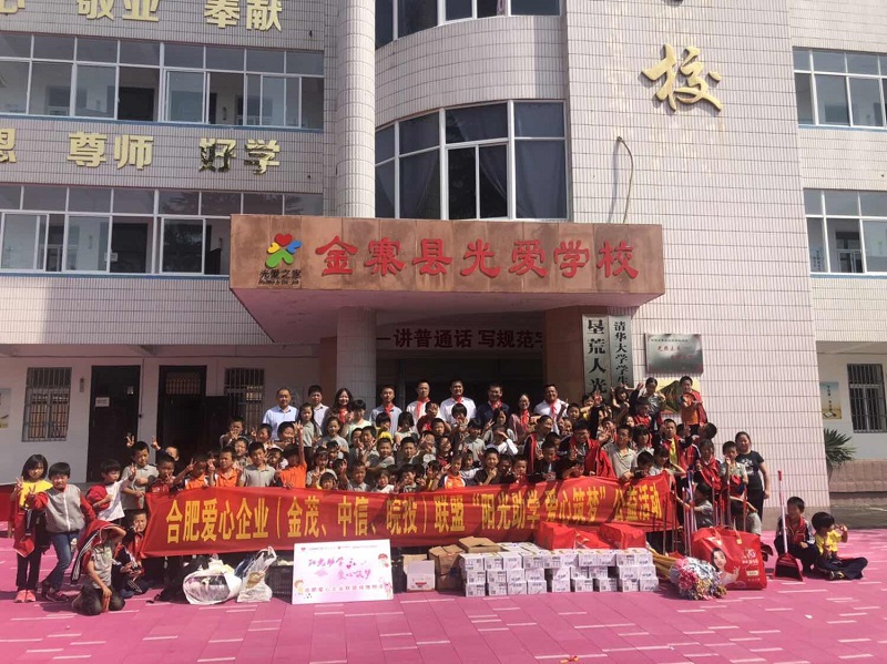 喜迎七十華誕,感恩偉大祖國,為積極踐行國企社會責(zé)任,公司聯(lián)合中國金茂合肥公司、中信銀行合肥望江西路支行共同成立“陽光助學(xué) 愛心筑夢”——合肥愛心企業(yè)聯(lián)盟,于9月25日、26日開展愛心助學(xué)活動,先后走進(jìn)金寨縣燕子河初級中學(xué)、水竹坪實驗學(xué)校水坪教學(xué)點、金寨縣光愛學(xué)校。活動前,公司積極與學(xué)校溝通,按需捐助,同時發(fā)動公司員工積極捐物,奉獻(xiàn)點點愛心。