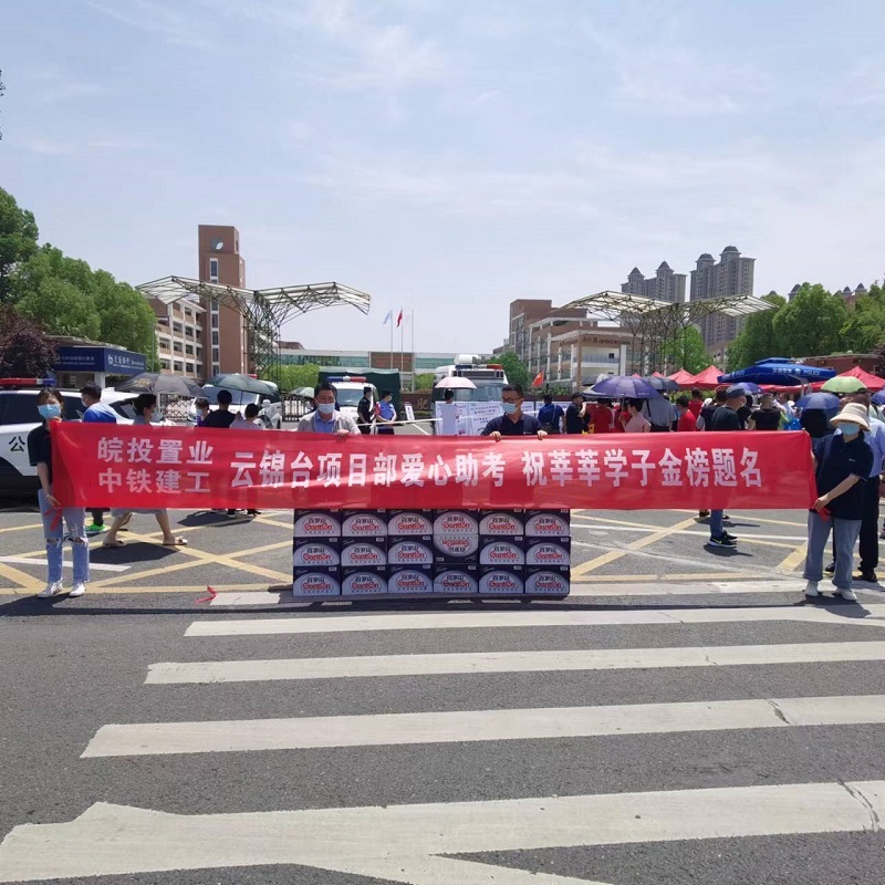 2022-06一年一度的高考拉開序幕,莘莘學(xué)子即將奔赴考場,為夢起航。2022年6月7日上午,由皖投置業(yè)與中鐵建工云錦臺項(xiàng)目部聯(lián)合組織的主題為“云錦臺項(xiàng)目部愛心助考 祝莘...